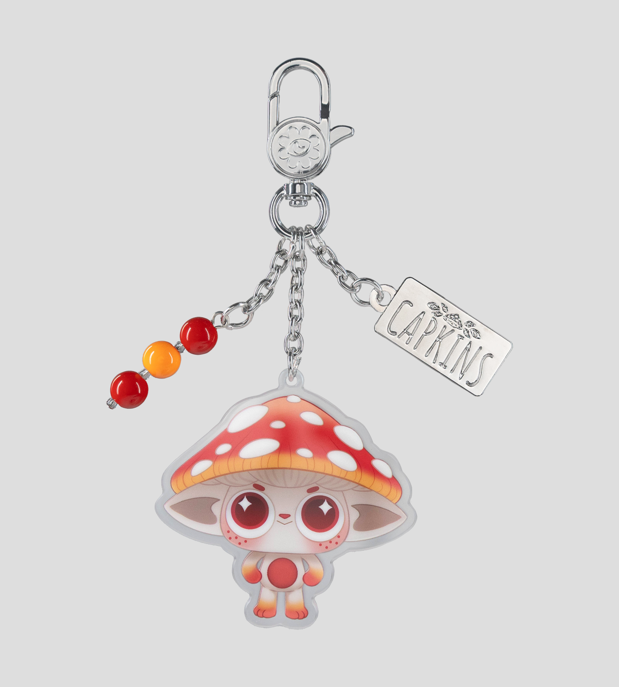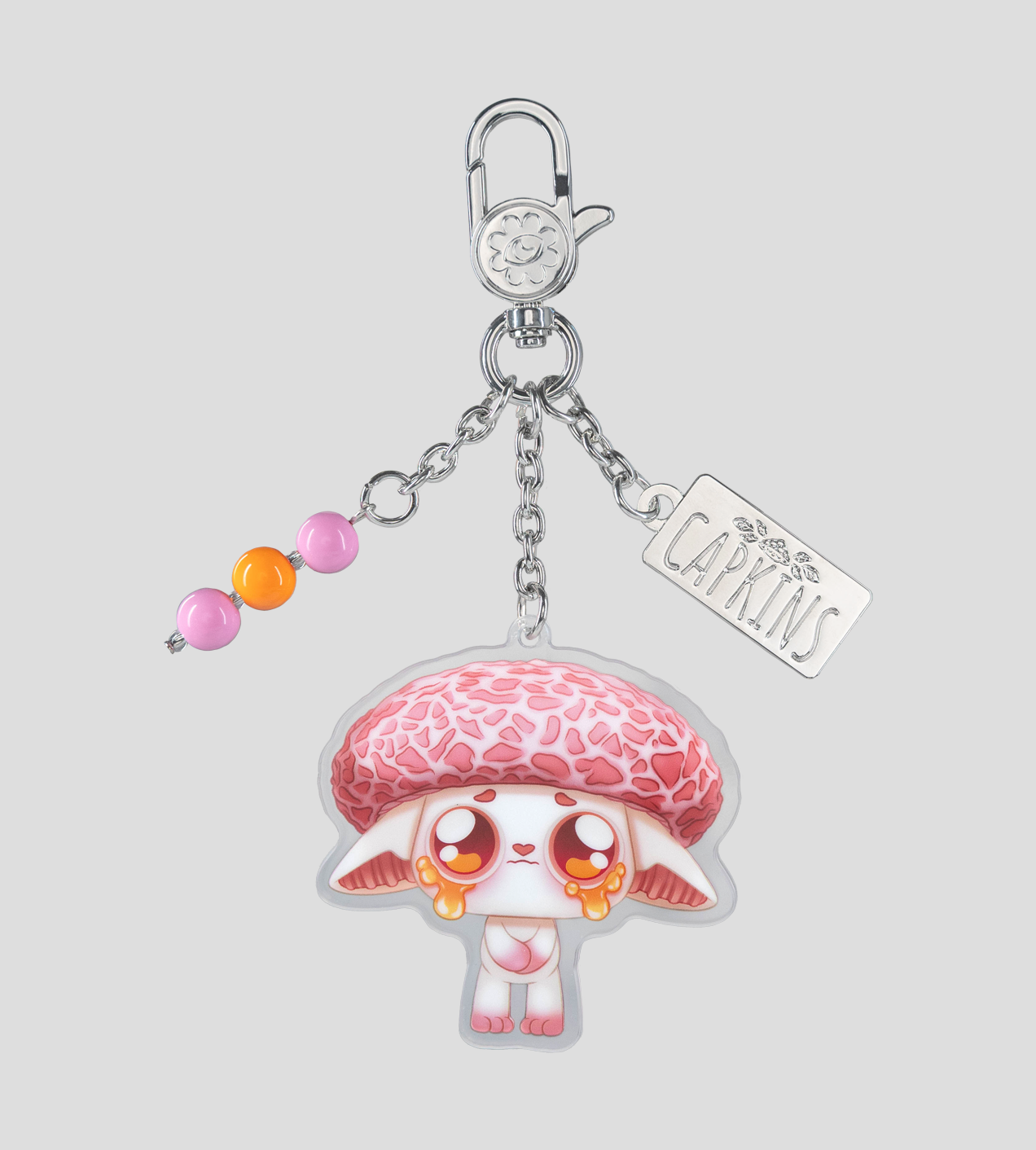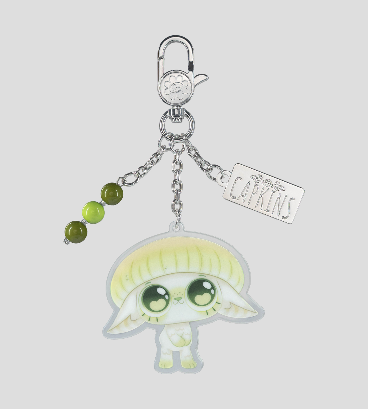 Mysterious and mischievous, Capkins dwell in the deepest, darkest corners of the Fungi Forest. Let them bring some magic to your bags with this blind assortment of acrylic bag charms. Each features a different Capkin with color-coordinated beaded drops and Capkins placards. Which one will you get? It's a surprise!