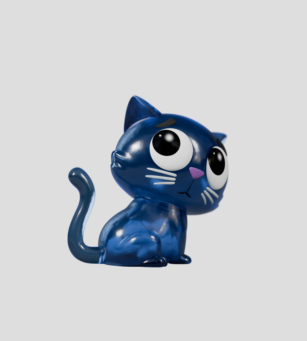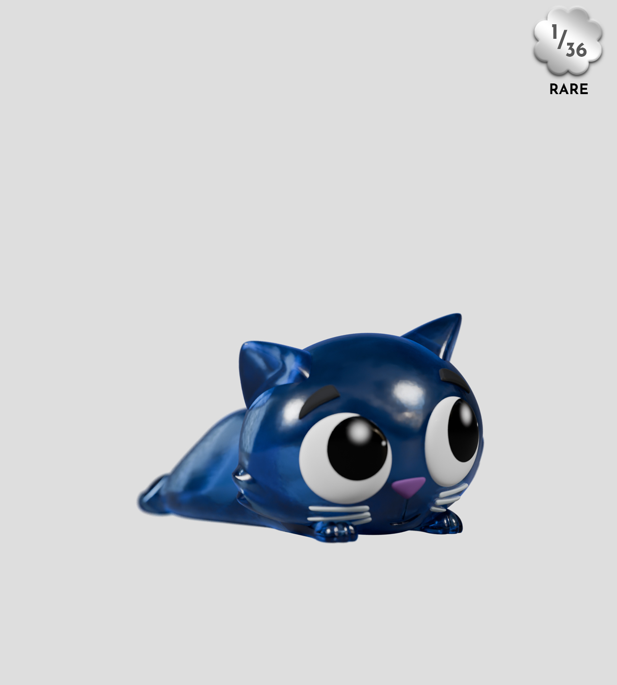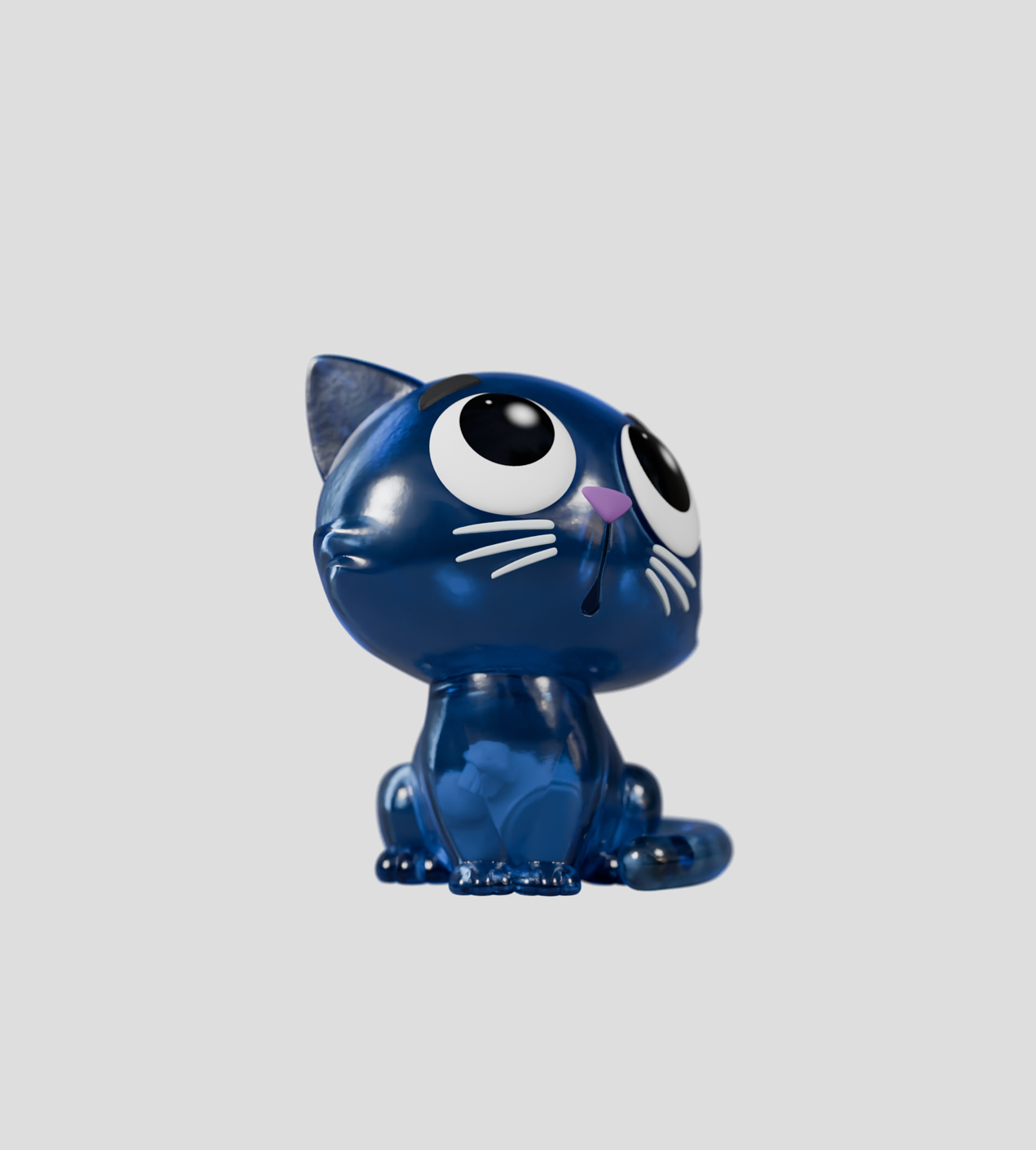Charlie the cat lives for food and will eat just about anything. After eating a meal that was a bit too big for him to digest, he had to get a CT scan to see what was the problem. But something went wrong! Once a beautiful black cat, Charlie was left permanently in a transparent blue state, and earned the nickname Catscan. Now he can see everything he eats! Each variant has glow in the dark foods that Charlie has eaten.